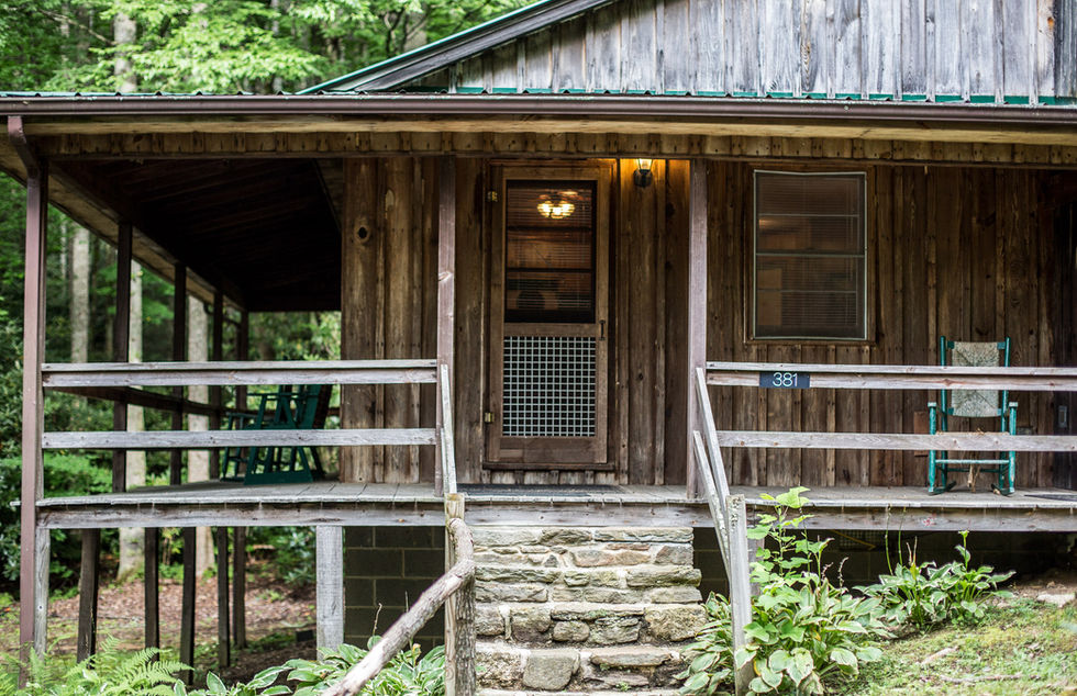 A charming Appalachian cabin with a wrap-around porch, Dogwood Den greets you with gleaming pine floors and a cozy fireplace.